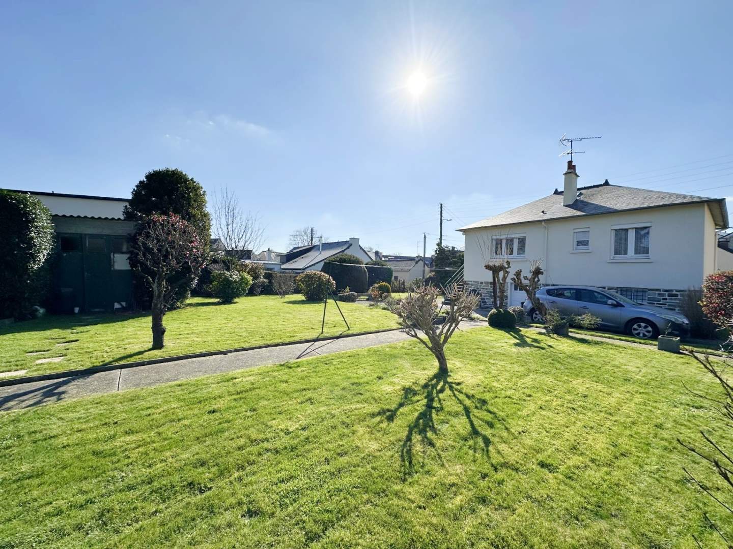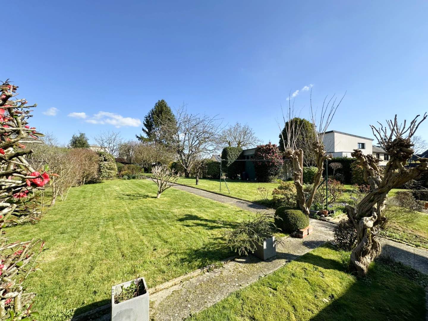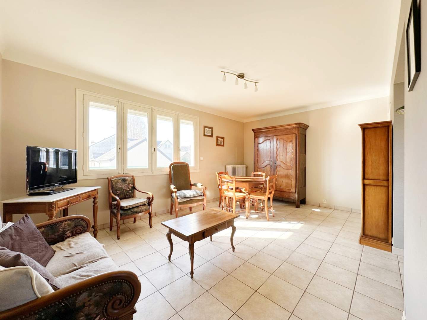 - Au sous-sol : un garage, une pièce aménagée, un espace chaufferie, une cave, un lavabo, WC.